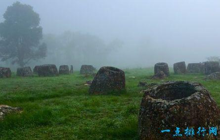 成千上万的这些神秘的石缸,有的高达3米,分布在平原上,目前还不清楚,是世界未解之谜之一。一些人认为这些石缸是用来储存酒精的,另一些人则认为它们是用来收集雨水的,还没有确切的定论。